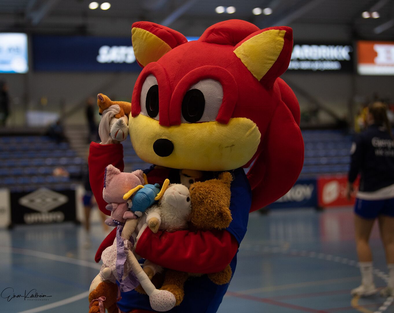 Fant og Finte fikk jobben med å samle inn bamsene og sørge for at Adina Stiftelsen fikk de med seg etter kampen. Et raskt overslag sier oss at omtrent halvparten av de rundt 350 tilskuerne i hallen denne kvelden hadde med seg en bamse som ble gitt bort (med unntak av et par tre stykker som angret seg og ba pent om de ikke kunne få igjen bamsen sin).